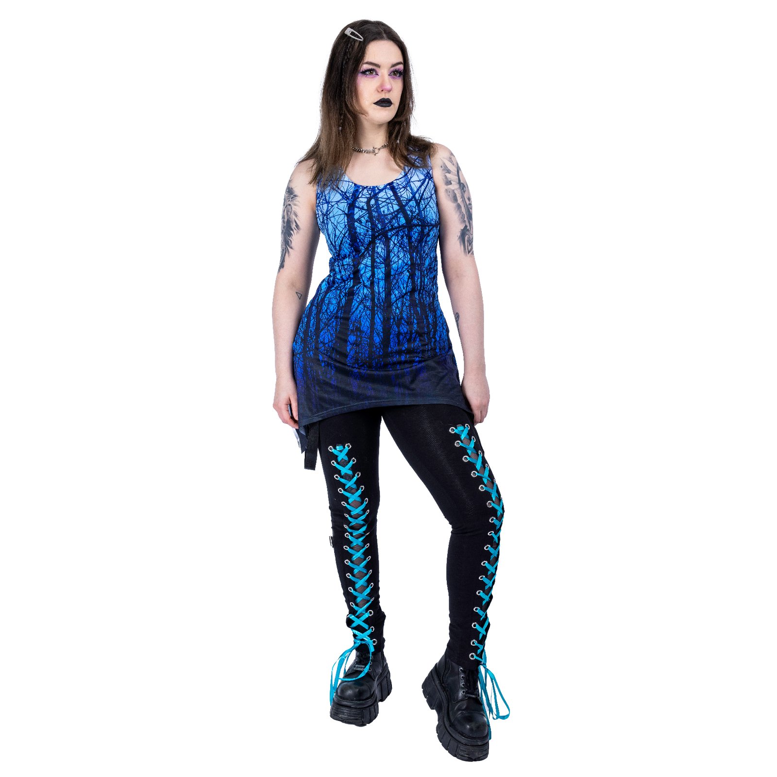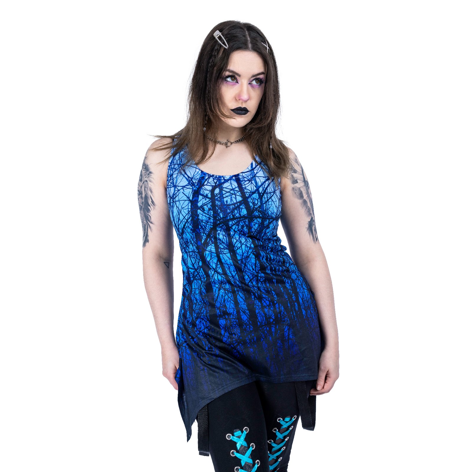 The blue forest lace panel vest ladies is crafted to elevate your alternative wardrobe. Essential design meets dark aesthetics, creating presence without compromise. Don’t Blend In and embrace your individuality with confidence.
