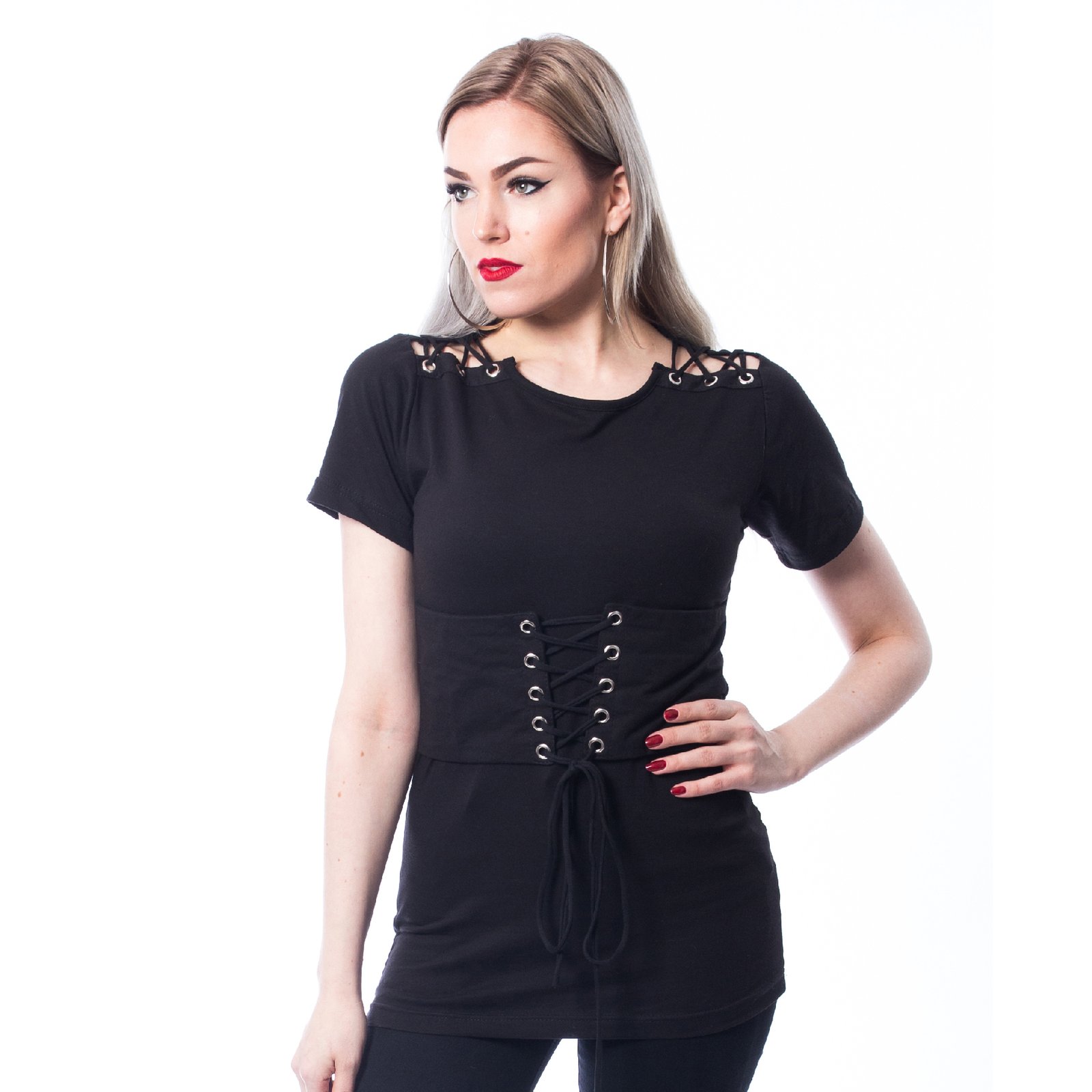 The char top ladies is crafted to elevate your alternative wardrobe. Exclusive design meets dark aesthetics, creating presence without compromise. Never Ordinary and embrace your individuality with confidence.