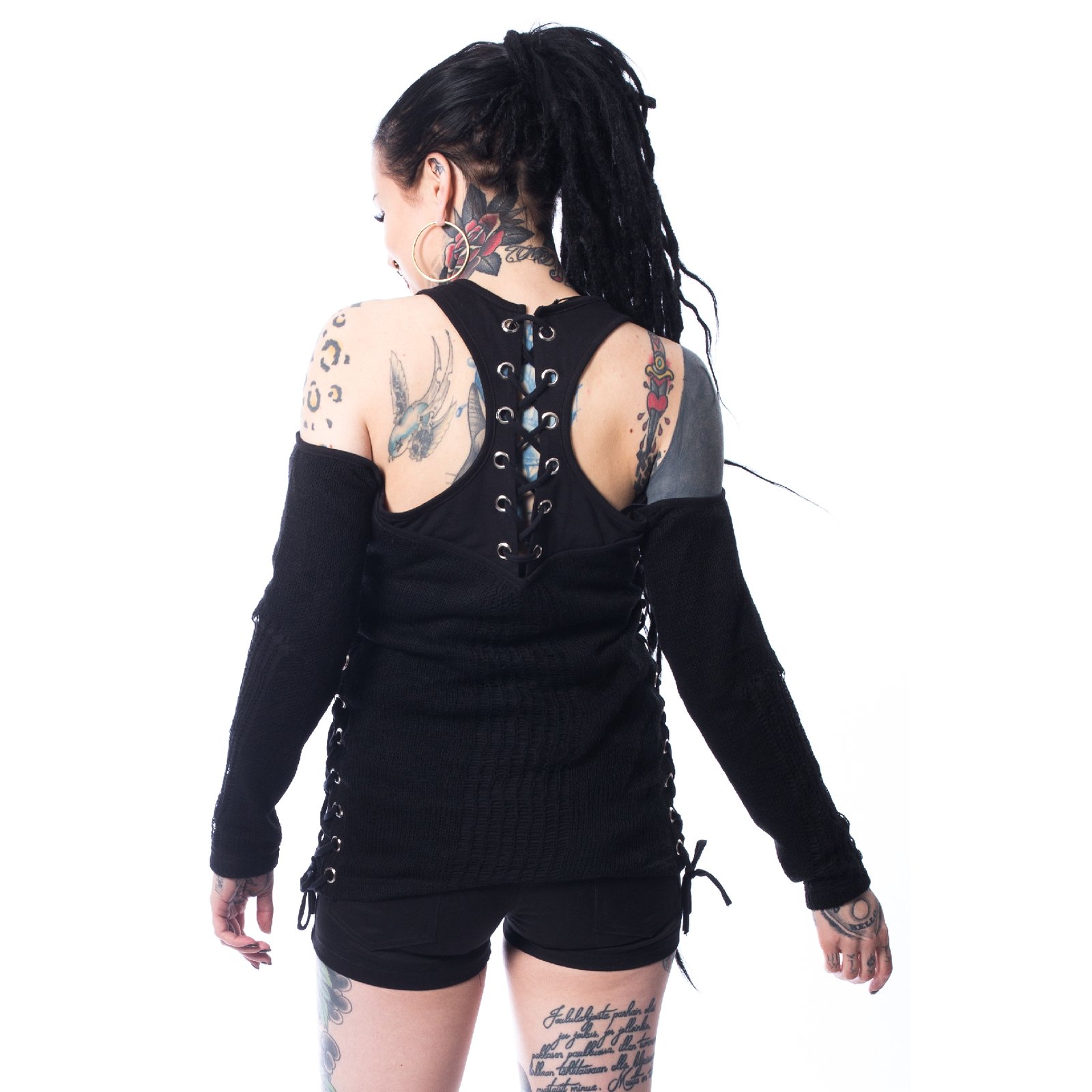 Emiko Top Ladies in Black crafted from Acrylic: by Heartless. Never Ordinary. Bold alternative fashion essential from our Tops collection. Available online