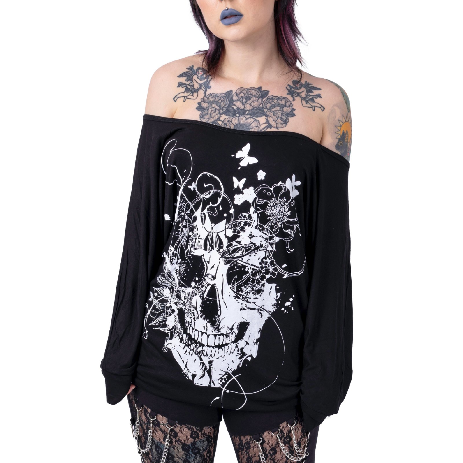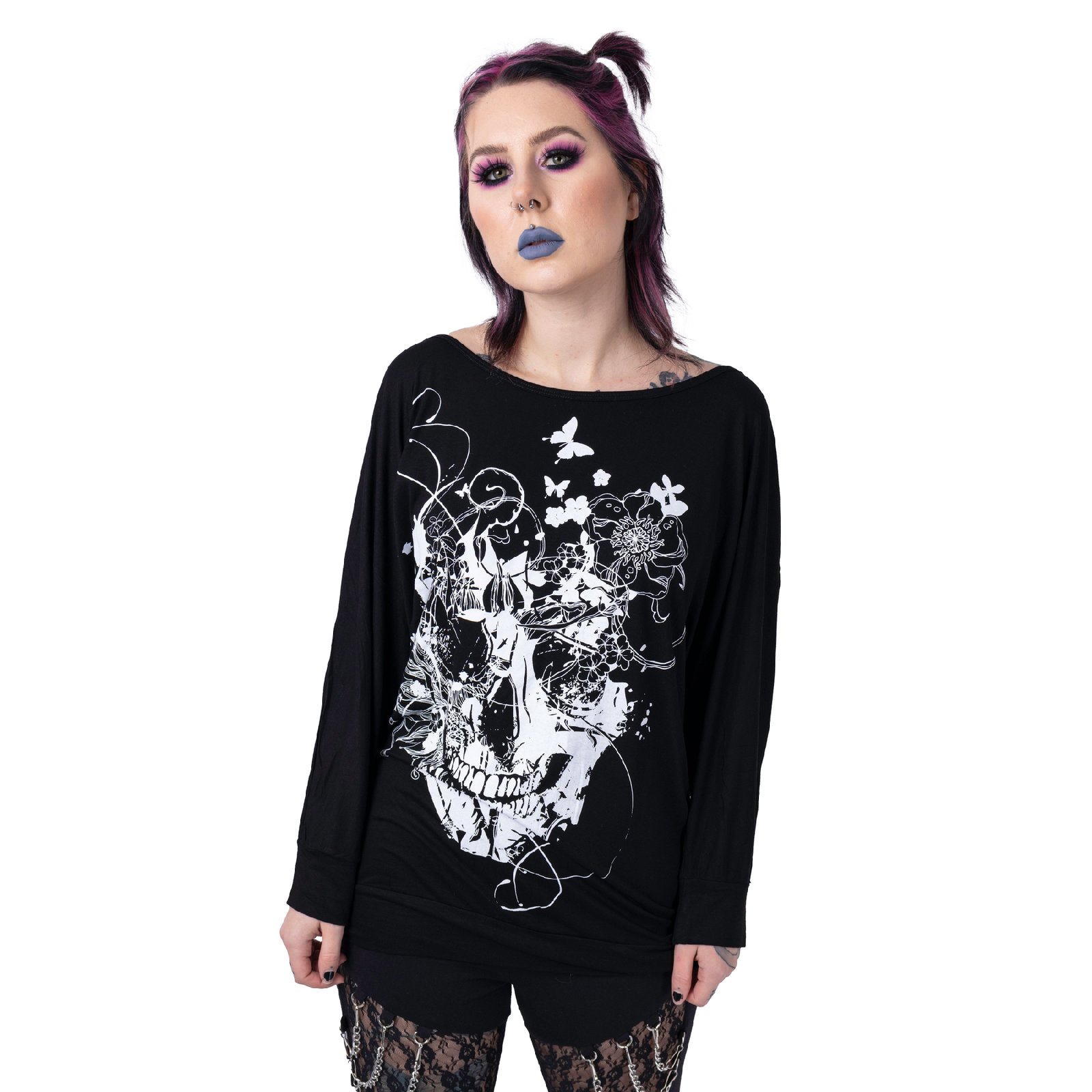 The grunge skull top ladies is crafted to elevate your alternative wardrobe. Exclusive design meets dark aesthetics, creating presence without compromise. Not Your Average and embrace your individuality with confidence.