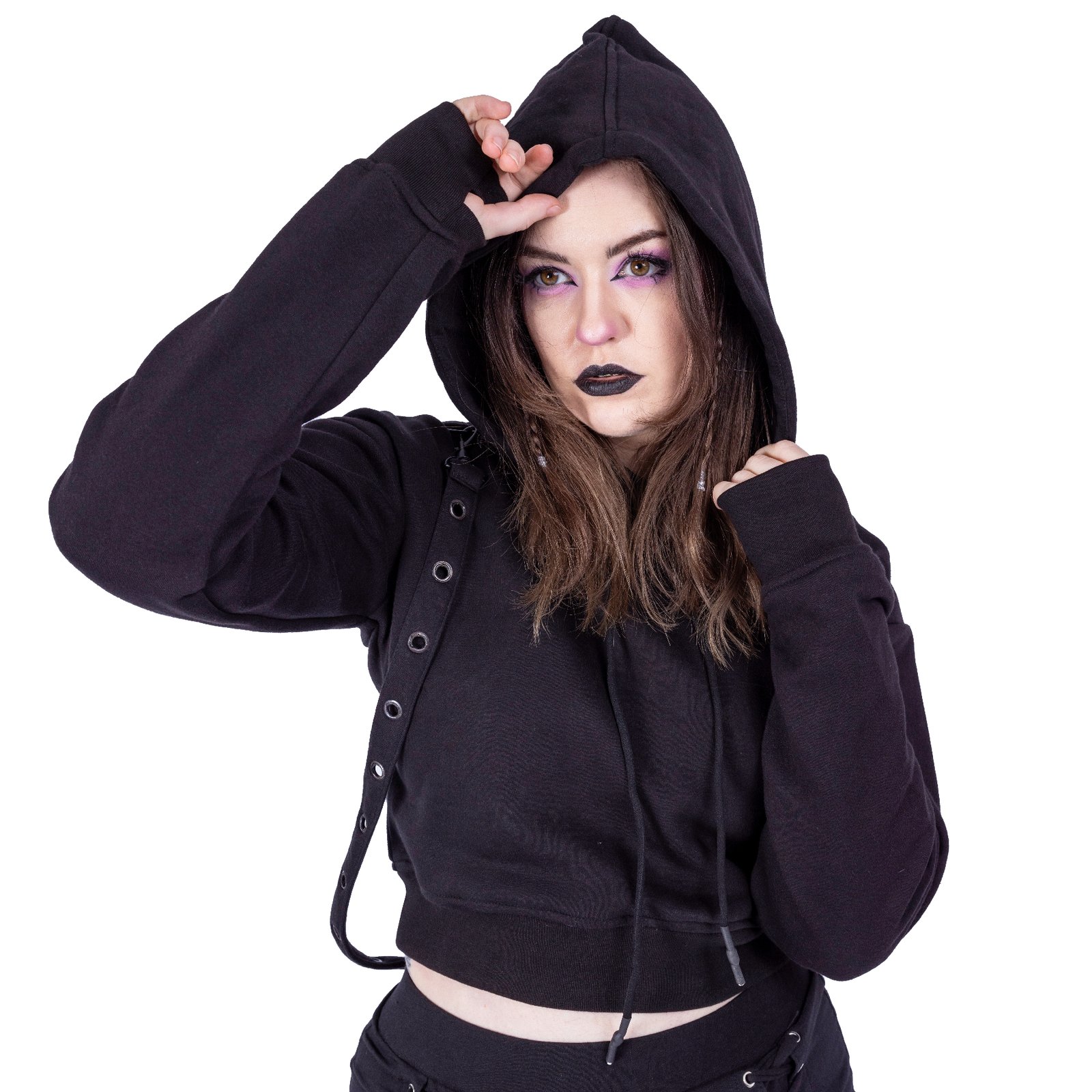 The kyda hood ladies is crafted to elevate your alternative wardrobe. Stunning design meets dark aesthetics, creating presence without compromise. Not Your Average and embrace your individuality with confidence.