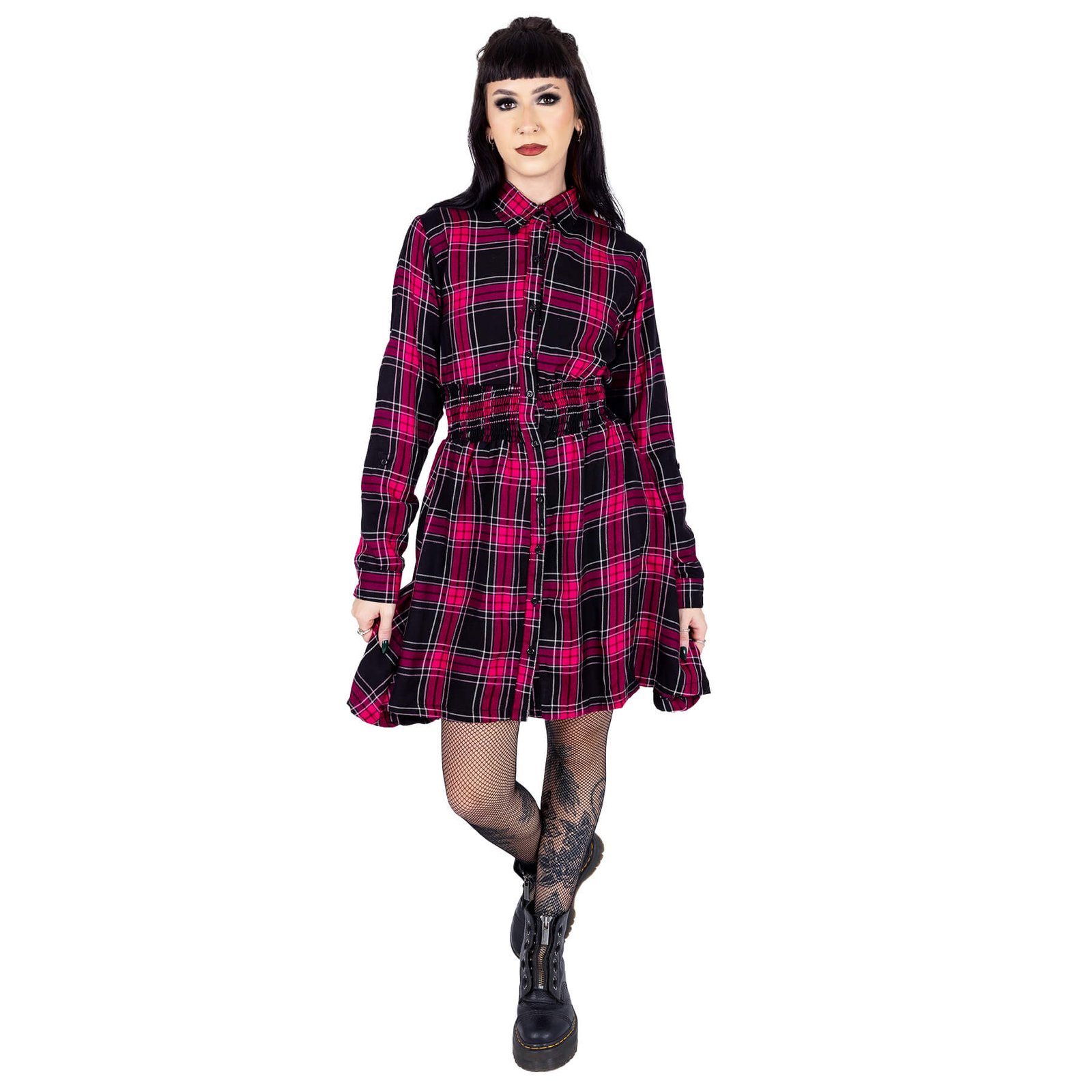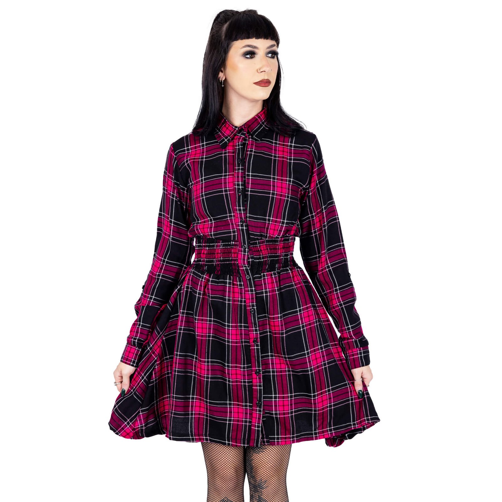 Prairie Dress Ladies in Dark Pink Check crafted from Polyacrylic – 2024 release by Heartless. Dare to Be Different. Unforgettable alternative fashion essen