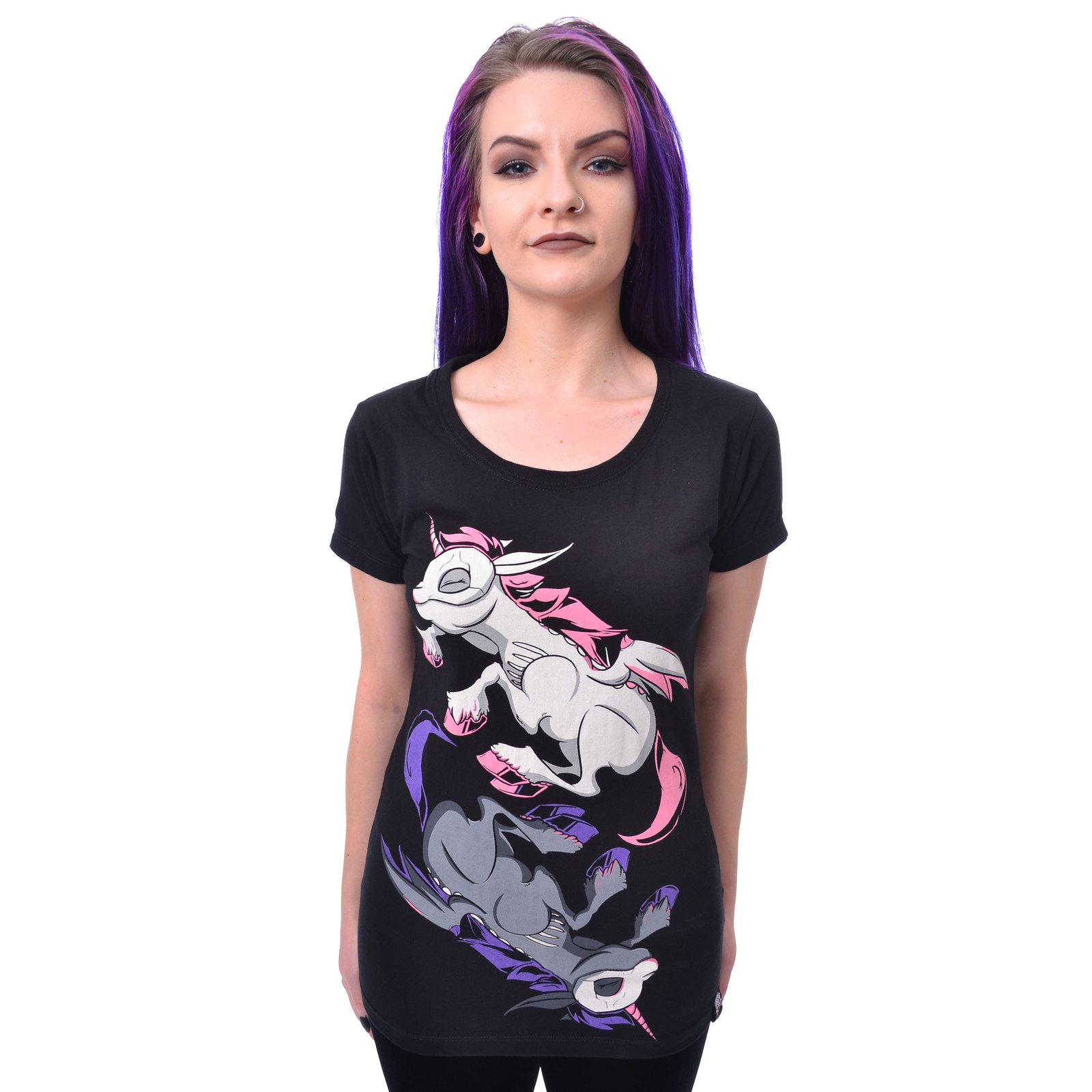 The unicorn night t-shirt ladies is crafted to elevate your alternative wardrobe. Essential design meets dark aesthetics, creating presence without compromise. Fearlessly Different and embrace your individuality with confidence.